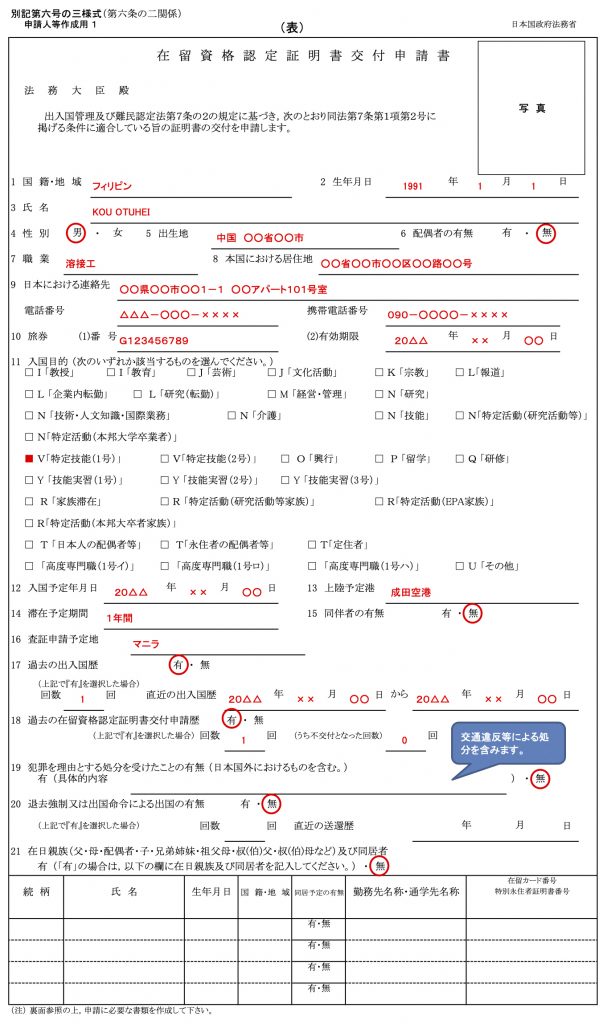 出典: 在留資格「特定技能」 | 出入国在留管理庁 (moj.go.jp)在留資格変更許可申請 在留資格変更許可申請書【記載例】