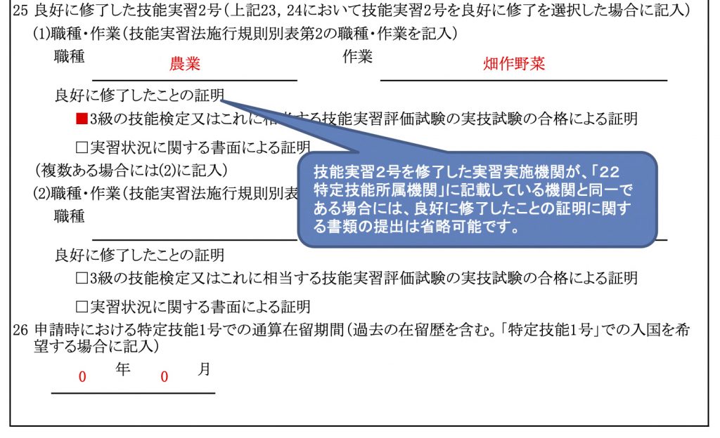 - 25:良好に修了した技能実習2号の職種または作業内容