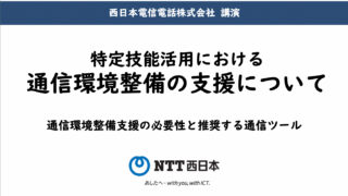 セミナー・説明会 [NTT西日本]特定技能活用ウェビナー:特定技能活用における通信環境整備の支援について この記事では、NTT西日本光ビジネス営業部第二営業担当部長 有吉晃一氏から、「特定技能活用における通信環境整備の支援について」について解説しています。なお、[Linkus]代表取締役・岡﨑氏による「特定技能外国人の採用、雇用、支援業務を効率... 2022.04.21 セミナー・説明会
