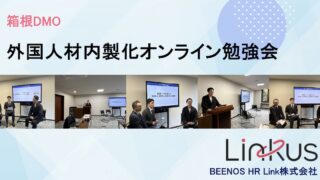 Uncategorized 外国人雇用の“内製化”を支援|箱根DMOセミナーで事例共有 [Linkus]を運営するBEENOS HR Linkの代表・岡﨑陽介は2025年11月19日、箱根町観光協会(DMO箱根)主催の「外国人材雇用の内製化オンライン勉強会」に登壇。宿泊業界における特定技能の活用や社内支援体制、地域での外国人材... 2026.01.15 Uncategorized