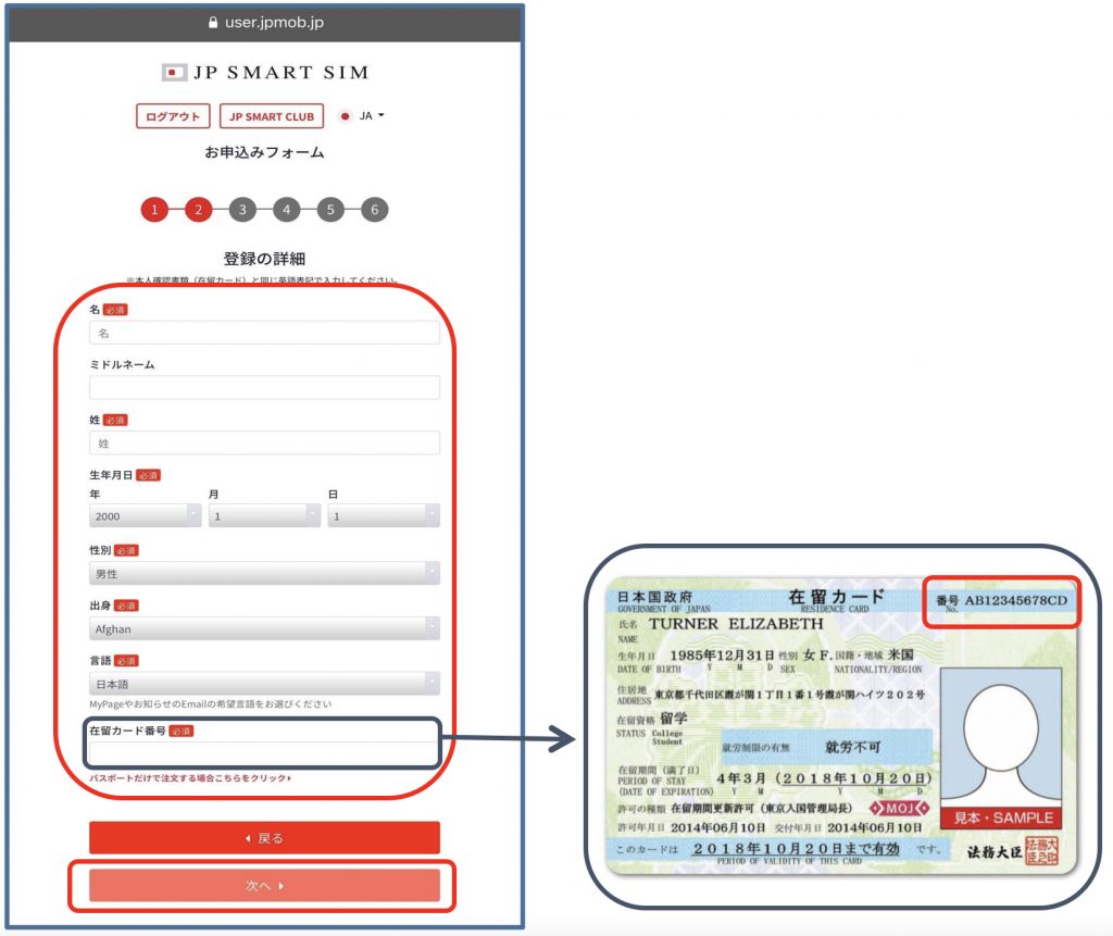 ・DATA SIM:パスポートの顔写真ページ or 在留カード(表・裏)