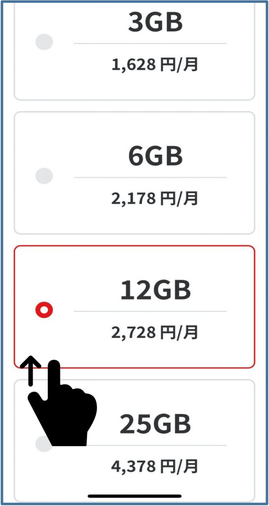 確認のため、再びサービスとデータ容量を選択し、上へスライドします。