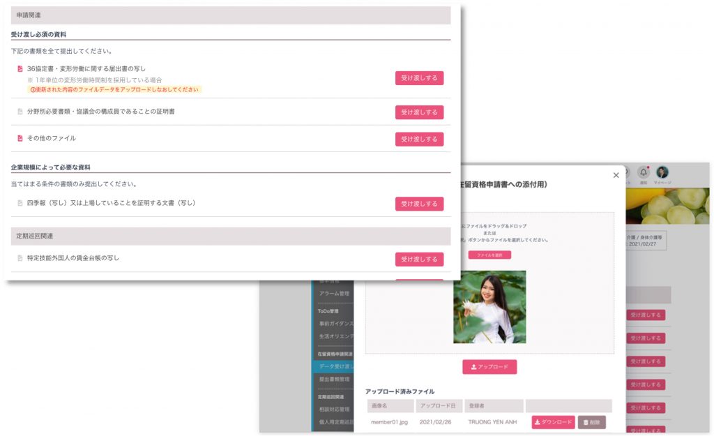 煩雑な書類作成だけでなく、必要書類のデータの受け渡し(保管)も全て可能。
