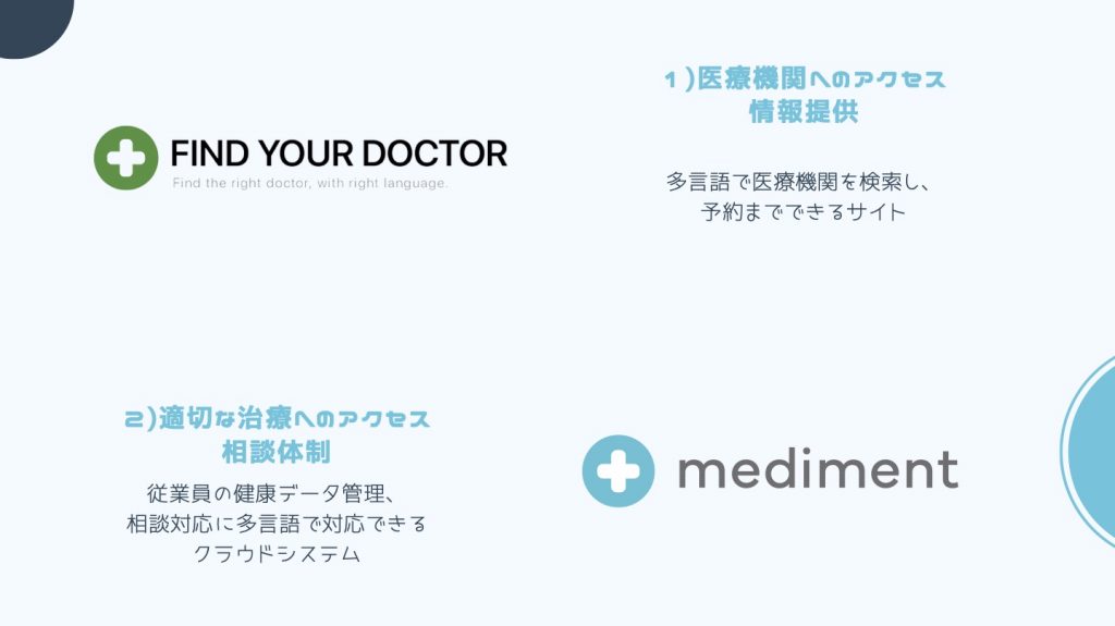 課題として挙げられた「医療機関へのアクセス」、「適切な治療へのアクセス」を解決するために我々が提供しているサービスがこちらです。