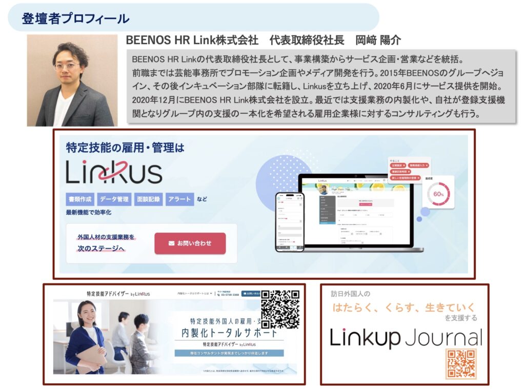 BEENOS HR Linkでは今後も、現場で役立つ実務知識を各地域に届けるとともに、外国人材とのより良い共生に向けた支援を続けてまいります。勉強会やセミナー登壇のご依頼は、[Linkus]へお気軽にご連絡ください。